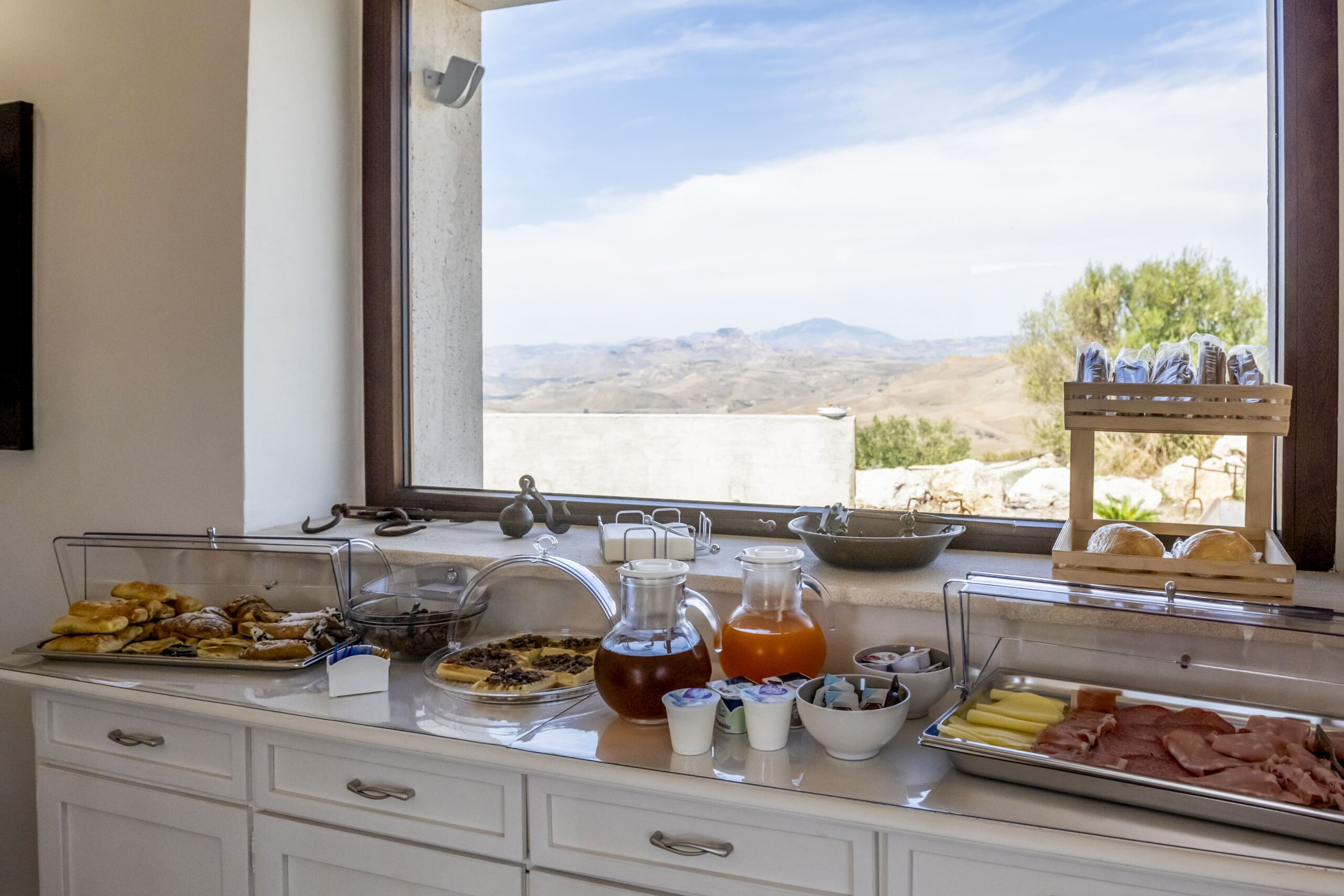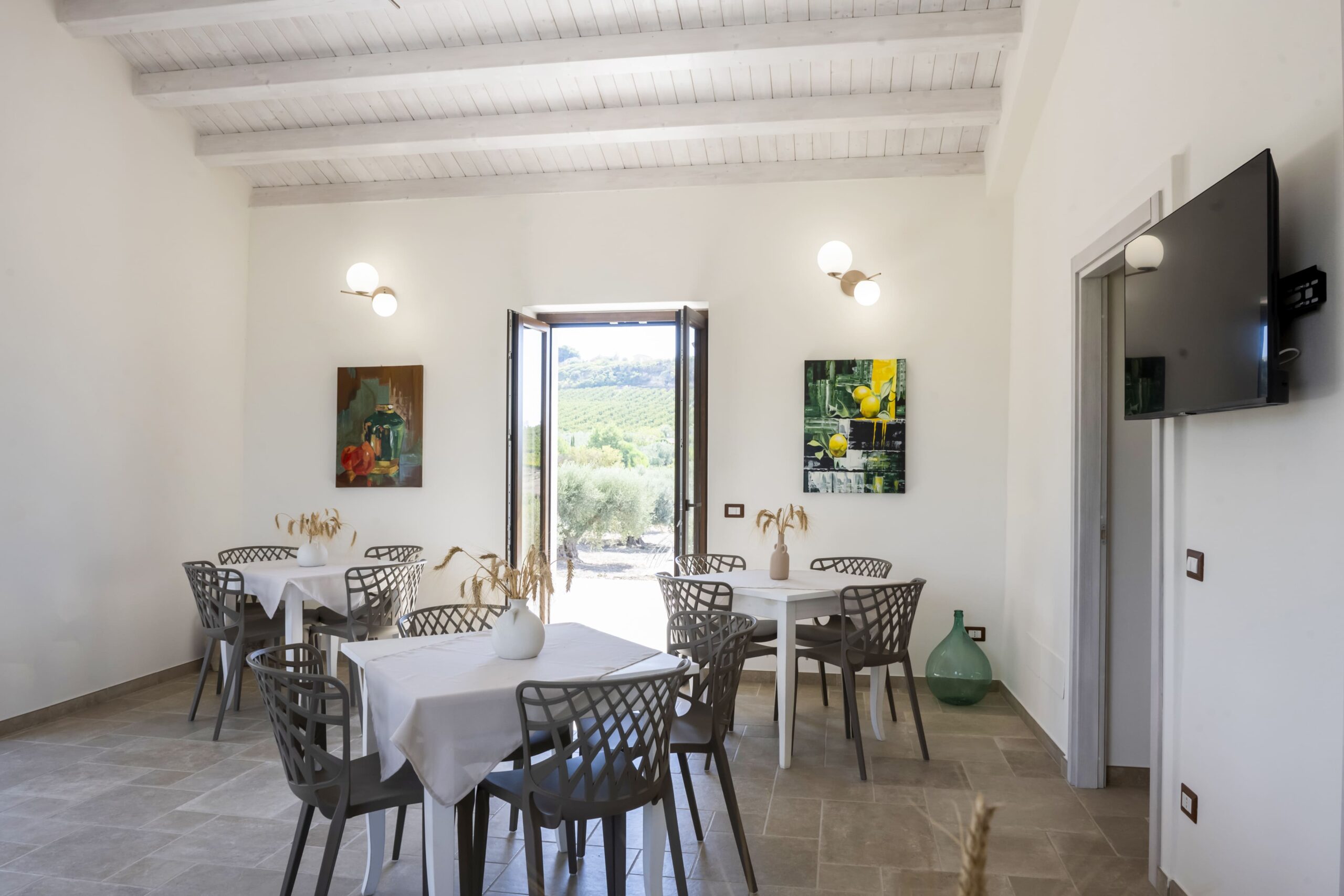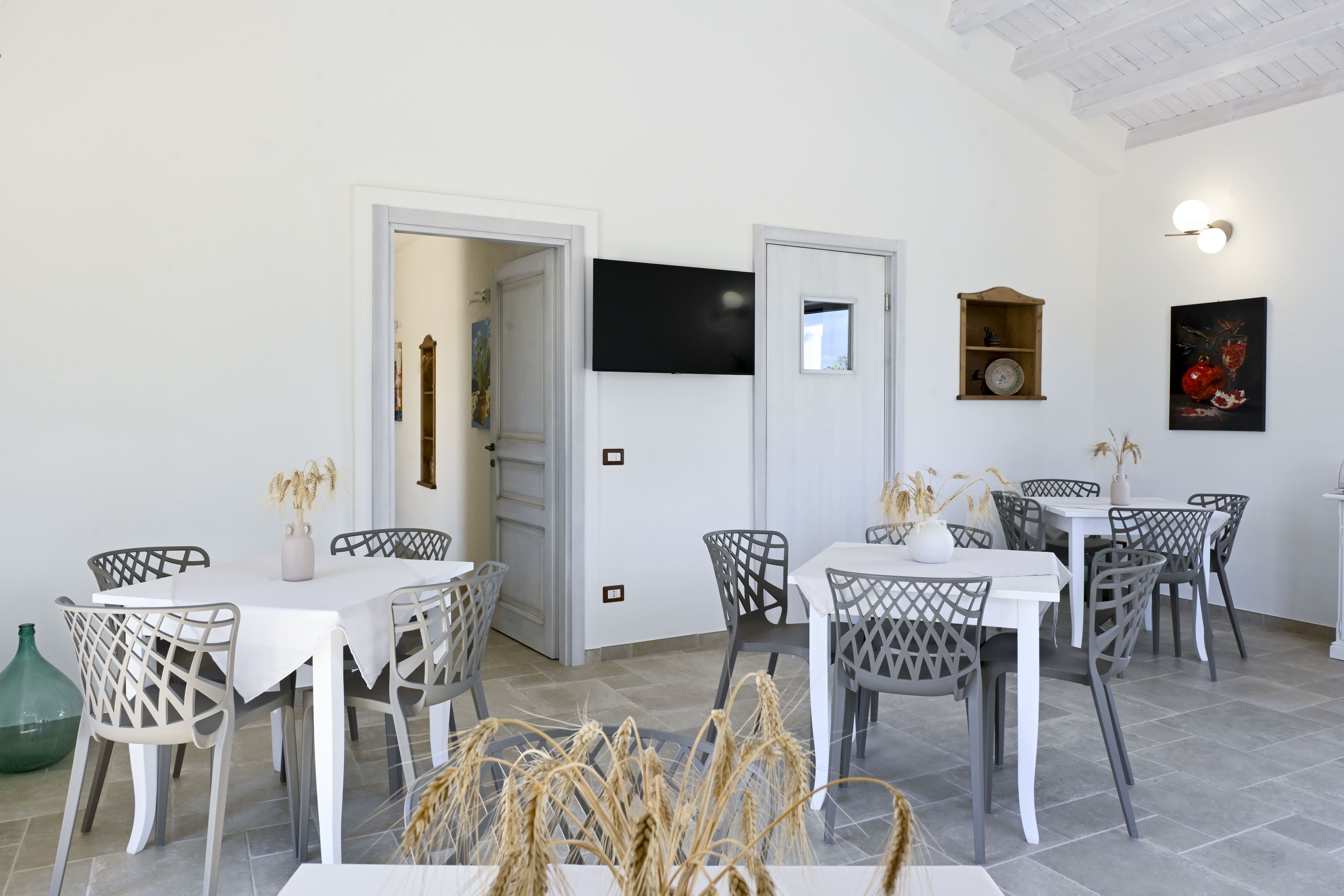 Gli spazi interni della struttura sono accoglienti e curati, con ambienti comuni pensati per il relax e la convivialità. L’area colazione, luminosa e confortevole, si apre verso l’esterno dove è possibile gustare i sapori locali all’aria aperta, immersi nel paesaggio siciliano e nella tranquillità della natura circostante.