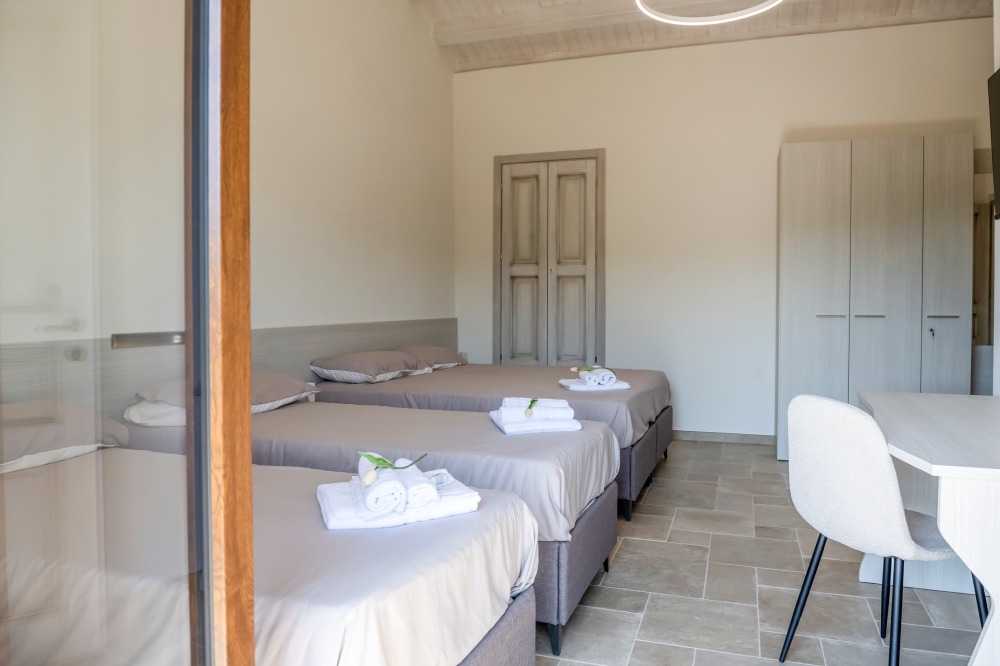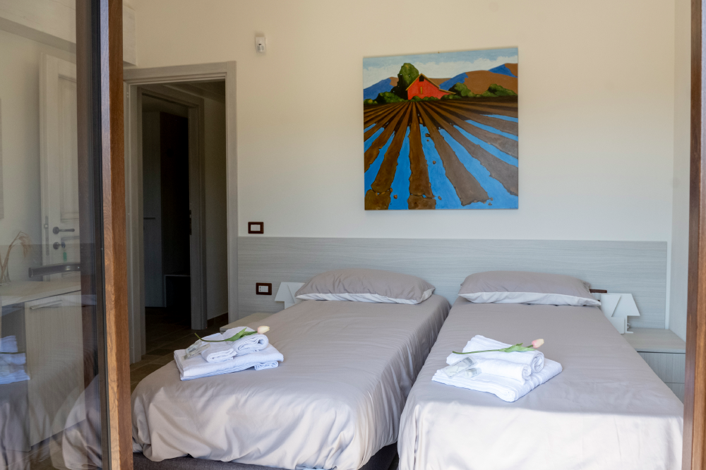 Tutte le nostre camere hanno una posizione panoramica con balcone e vista sulle colline, sono arredate con gusto e raffinatezza, dispongono di: bagno privato, ampie e confortevoli docce, aria condizionata, TV satellitare, Internet ad alta velocità, mini bar, telefono.