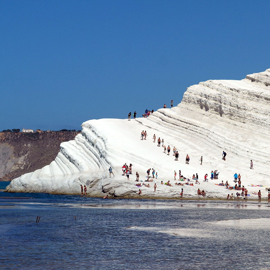 Lungo la costa di Realmonte, nell’agrigentino, la splendida scogliera bianca della Scala dei Turchi, dalla particolare forma, si staglia sul blu del mare regalando un panorama unico nel suo genere.